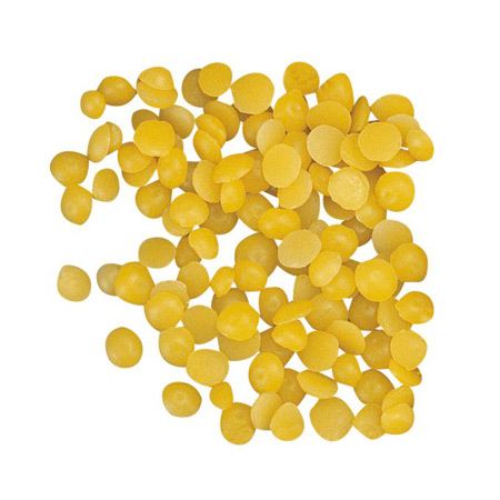 Melt the beeswax pellets in a water-bath, the melting point is about 56°C.