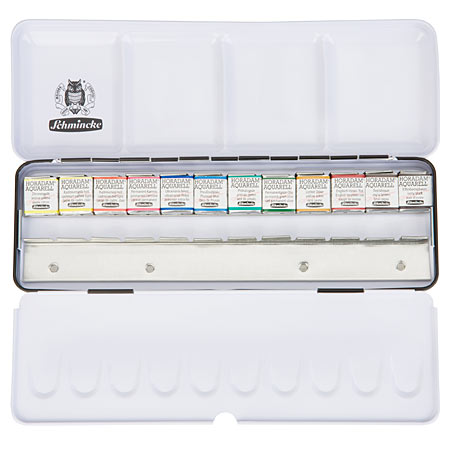 Schmincke Horadam - extra-fijne aquarelverf - metalen doos - 12 halve napjes & 12 leeg