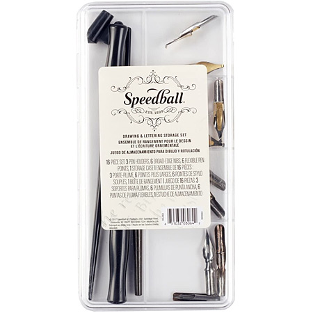 Speedball Drawing & Lettering Set - plastic doosje - 3 penhouders & 12 geassorteerde penpunten