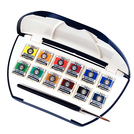 Talens Rembrandt Pocket Box - extra-fijne aquarelverf - plastic doos - 12 halve napjes