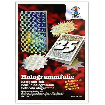 Ursus Film holographique adhésif 50µ - pochette 5 feuilles 23x33cm - 5 motifs argentés