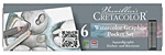 Cretacolor Watercolour Graphite Pocket Set - metalen etui - assortiment van aquarelleerbare grafietpotloden - 3 zwart & 3 getint