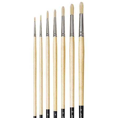 Natural polished handle with black end So-called silver ferrule Chinese Chungking bristle appreciated for centuries, has not only become more and more rare but also more and more expensive during the last decade. After years of development, Da Vinci introduces a high-quality alternative with synthetic bristles, which are very similar to their natural counterpart. This line convinces by its strong, flexible and nearly indestructible fibre and maintains its shape even after intensive use. Thus it is the perfect tool in oils and acrylics for every kind of thicker colour as well as rough surfaces. Moreover, the synthetic material is considerably easier to clean than natural bristle. |