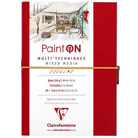 Clairefontaine Paint On - mixed media book - 32 sheets 250g/m² - 14.8x21cm (A5) - red cover - white paper natural grain