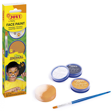 Jovi Face Paint - set de maquillage - assortiment de 3 godets 8ml de peinture cosmétique, 1 éponge & 1 pinceau