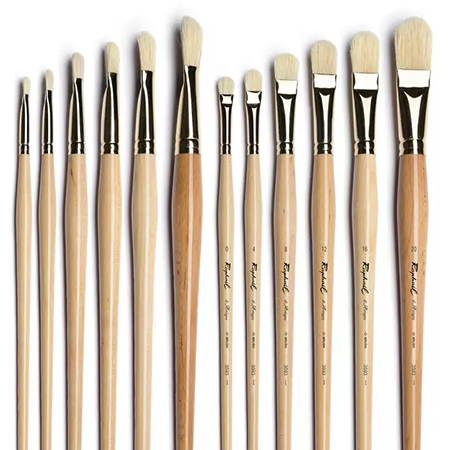 The D-Brush combines both a round and a flat brush. Its ferrule is shaped as a D, hence the name. One side is flat and stiff, ideal to apply and spread the paint, the other side is round and flexible, perfect to smooth and blend. The round side brings stiffness to the flat one for a more responsive stroke, as well as a better color retention, enabling the artist to paint more surface in one go.