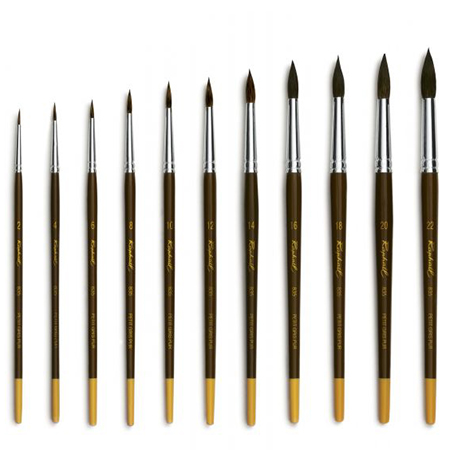 The tuft spontaneously gathers together and forms a point, as if by magic. School grade grey squirrel hair. Very good capacity to hold paint. Raphaël quality for beginners. Aluminium ferrule Short dark brown varnished handle |