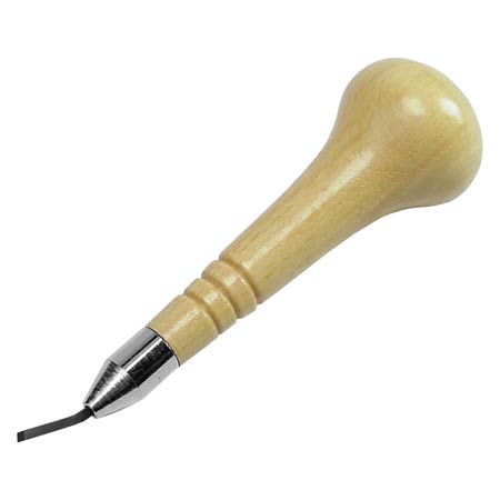 Certainement le procédé le plus ancien et le plus difficile, le burin est une tige d'acier trempé, affûtée et fixée dans un manche, qui découpe nettement le métal et l'enlève sous forme de copeaux, donnant ainsi un tracé à la fois pur et sévère.