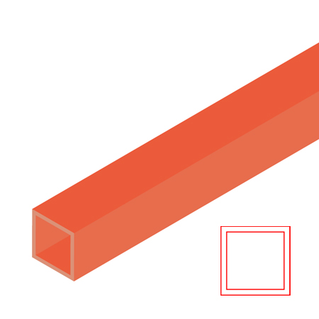 Raboesch transparent styrene tube - square - 33cm - in./out. 3/4mm - red