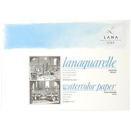 Lana Lanaquarelle - aquarelblok - 20 vellen 100% katoen - 300gr/m² - 4-zijdig gelijmd