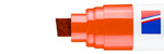 Permanent marker with chisel tip, permanent, low-odour ink.