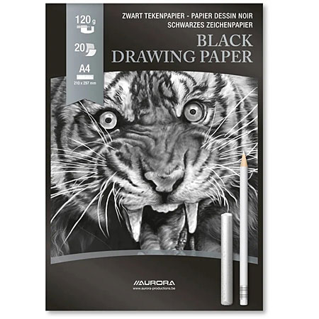Aurora Raphaël - blok zwart papier - 20 vellen 120gr/m² - 21x29,7cm (A4)