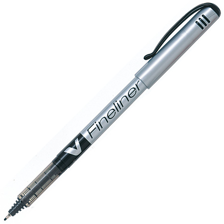 The V-Fineliner is a liquid ink fineliner with a fine tip equipped with a regulator for perfect ink flow.