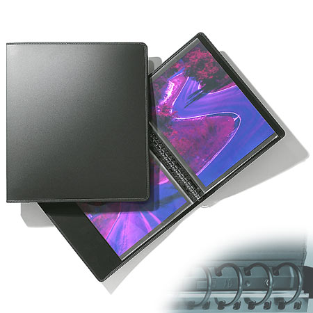 - Strong multiring mechanism featuring exclusive locking system - Black saddle stitching and overlaid black edging - Capacity: 30 sheet-protectors - Includes 10 Archival Cristal Laser sheet-protectors with luxury black paper inserts - Corresponding refill : 904 |