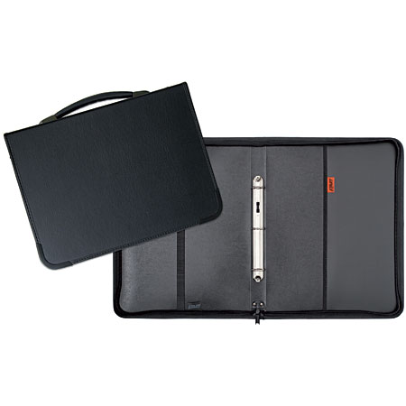 - Silver coloured ringmechanism with locking system - Inside black pocket - Zippered closure - Retractable black handle - Black metal corners and stitching - Capacity : 25 sheet-protectors - Sold empty - Corresponding refill : SPV |