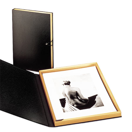 - Presentatiedoos in als leer afgewerkt zwart vinyl met korrelstructuur