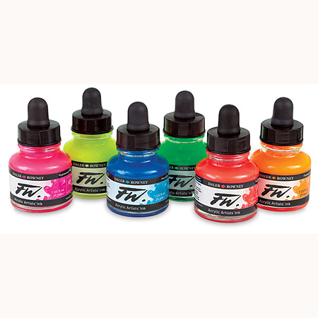 Daler-Rowney FW Acrylic Inks are acrylic-based, pigmented, water-resistant artists' inks with a high degree of lightfastness and intermixability.
