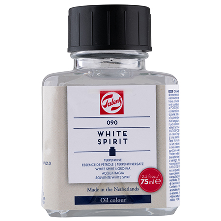 Samenstelling: aardoliedestillaat • Zeer zuiver, 100% verdampend; verdwijnt volledig uit de verffilm • Maakt olieverf mager (gebruiken in onderste lagen) • Geschikt voor het verwijderen van (droge) vernislagen • Geschikt voor het oplossen van kunstharsen • Ook voor het verdunnen van mediums en vernissen voor olieverf • Ontvlambaar |
