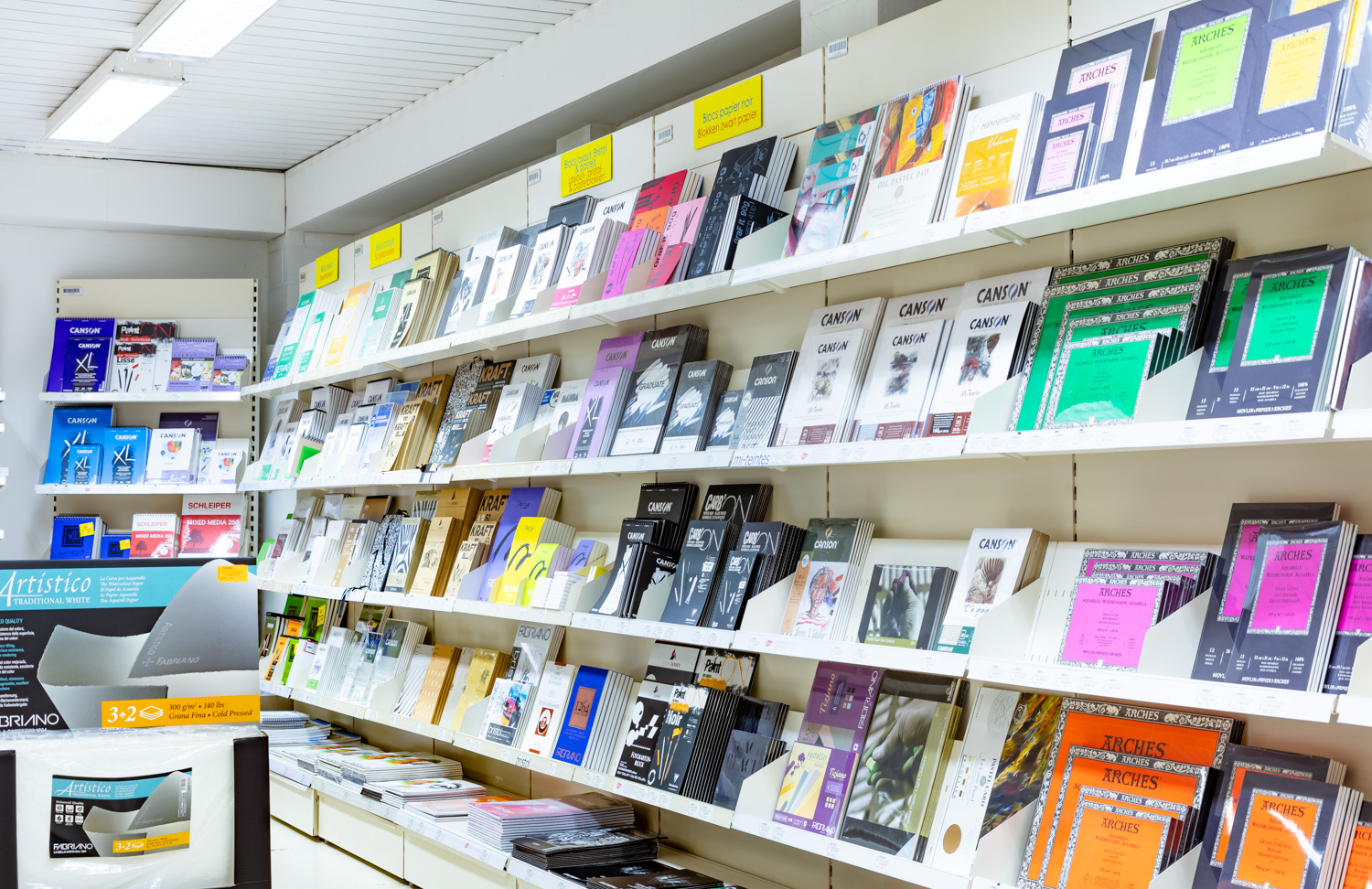 The shop on Chaussée de Charleroi, which covers more than 3,000 square metres, is mainly aimed at beginning and experienced artists, but also offers a full range of stationery and hobby items. Here you will also find a large framing department.