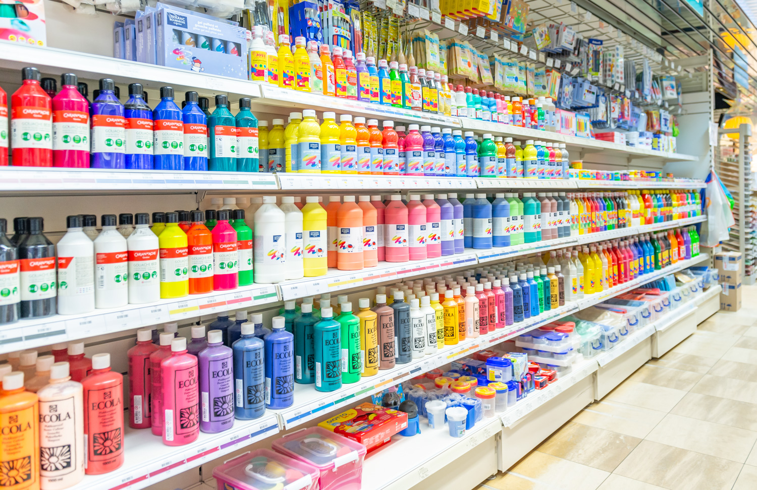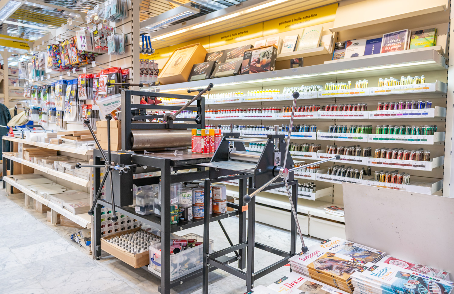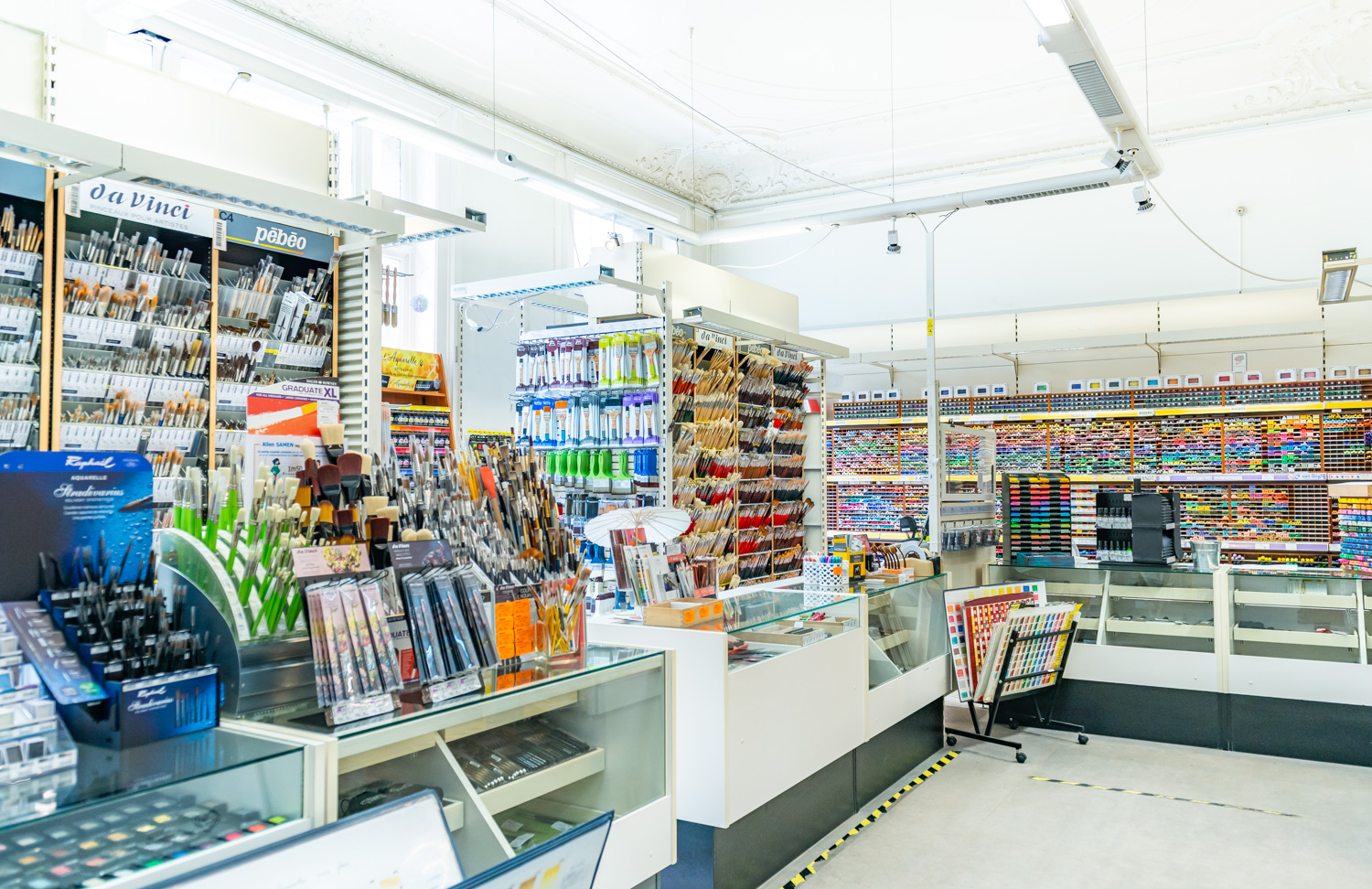 An incredibly wide and complete range of supplies and materials for all artistic techniques: painting, drawing, engraving and print making, sculpture, restoration, bookbinding, decoration …