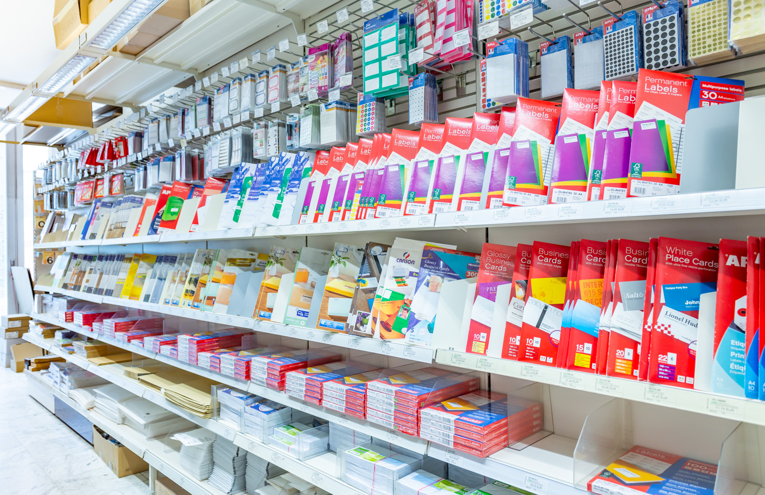 The Chaussée de Charleroi shop also offers a full range of office supplies and stationery: binders, suspension files, envelopes, folders, perforators, staplers, etc.