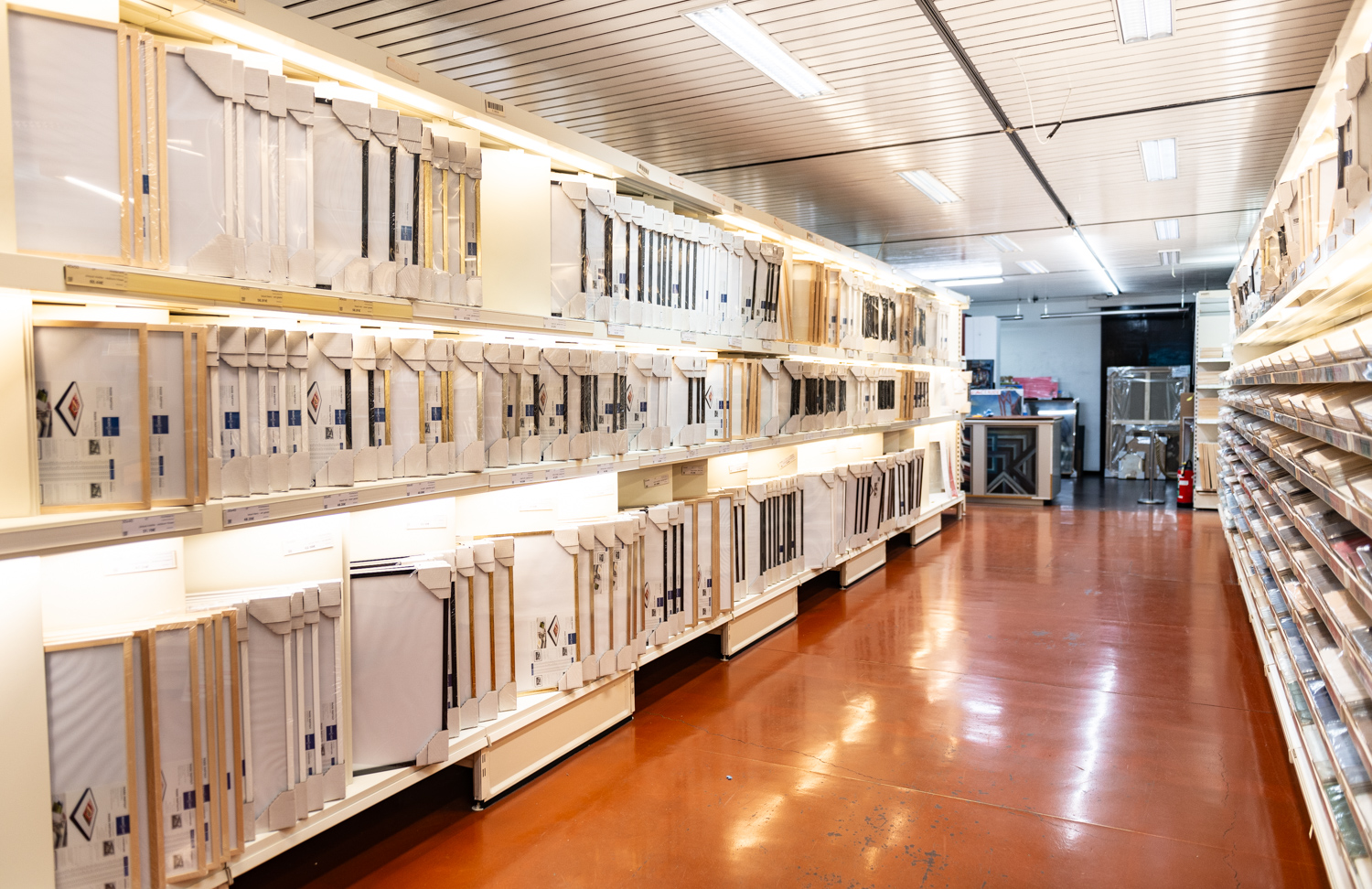 With over 350 m2 dedicated to stretchers, canvas stretchers and painting canvas, this department offers an incredibly wide range of sizes, thicknesses, textures and qualities, at unbeatable prices.