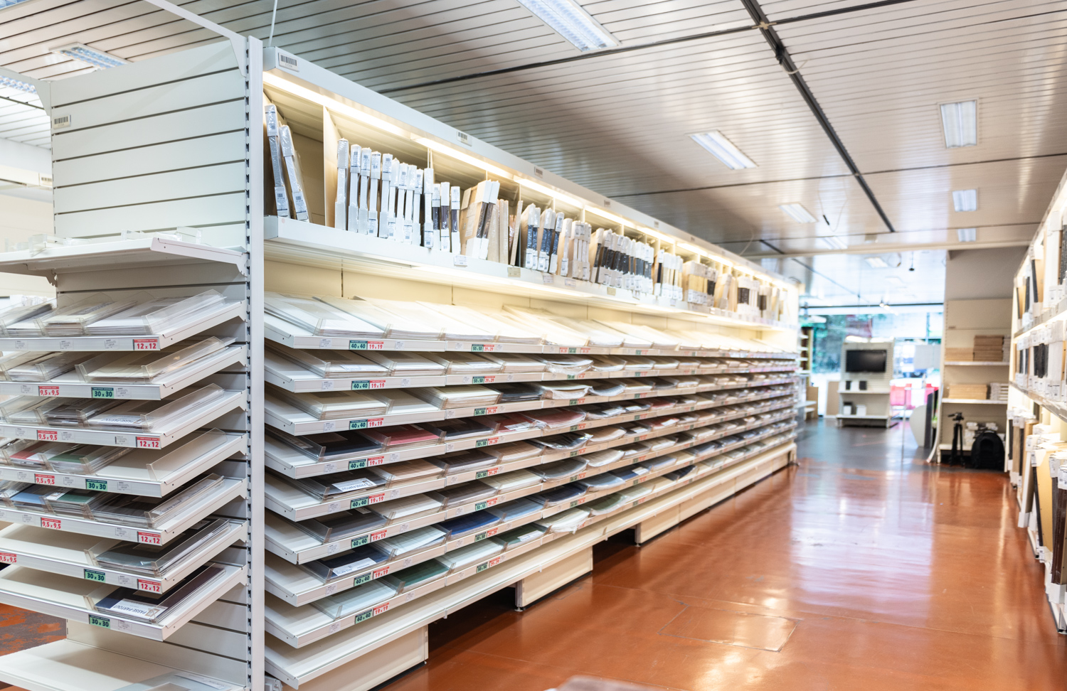 A sales area open to the general public (individuals), professionals (artists, architects) and retailers (shops), combined with a logistics platform for our website.